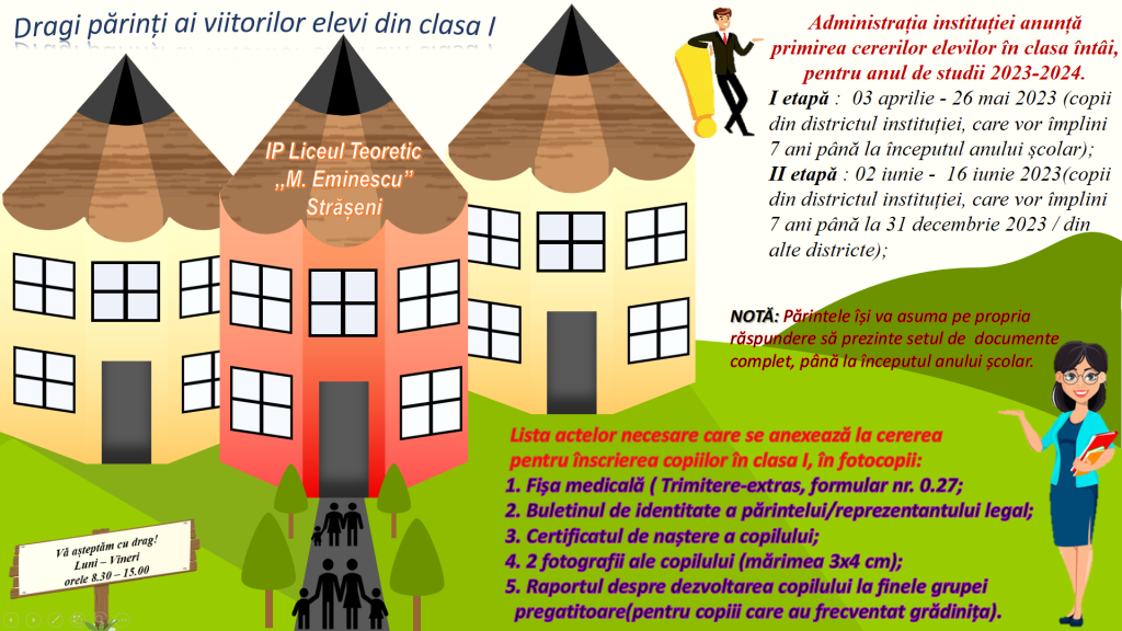 Înscrierea copiilor în clasa întâi 2023-2024