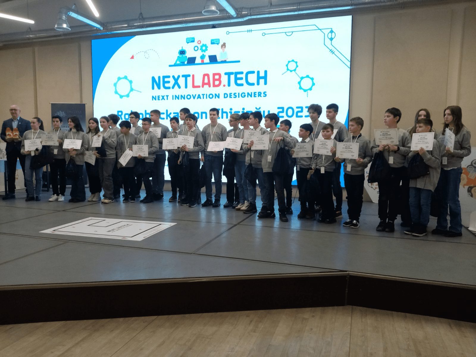 La data de 15 decembrie 2023, 4 elevi ai clasei a V-A din Liceul Teoretic „Mihai Eminescu” Strășeni, însoțiți de învățătoarea Iordachi Ina, au reprezentat raionul Strășeni și au participat în premieră la Hackathonul regional (Moldova-România) de robotică, pentru elevi de vârsta 8-12 ani, organizat împreună cu Clasa Viitorului și NEXT LAB.TECH. Partenerii evenimentului au fost Fab Lab Iași, Tech Serv și Sandra, iar ca invitați speciali: Ministerul Educației și Cercetării al Republicii Moldova, Universitatea Pedagogică de Stat Creangă din Chișinău și Institutul Național de Cercetare – Dezvoltare în Informatică – ICI București.