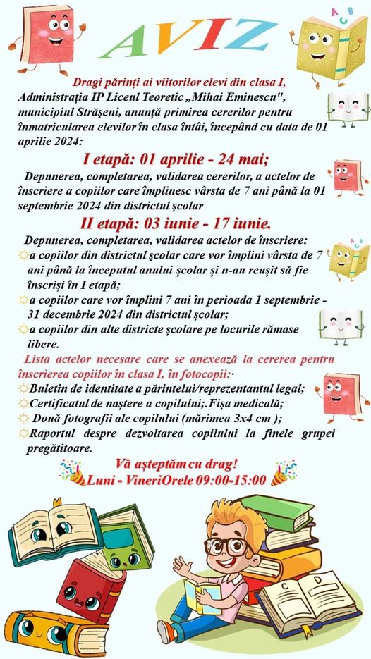 În atenția părinților, a început înscrierea în clasa I Programul de activitate a comisie de școlarizare