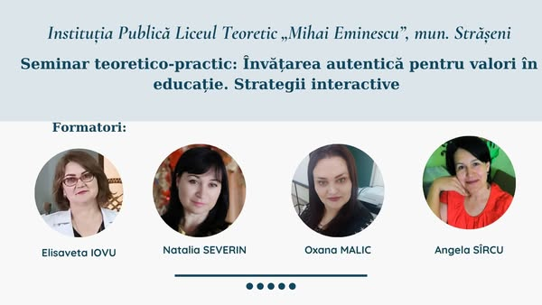 📢 Seminar teoretico-practic: „Învățarea autentică pentru valori în educație. Strategii interactive”.